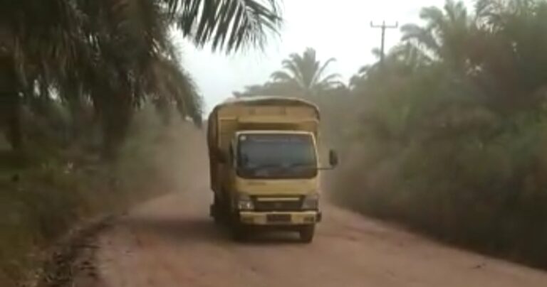 Lensa-informasi.com | Muba – Batu bara melintas di jalan Desa Mangsang Desa TSB .B1...