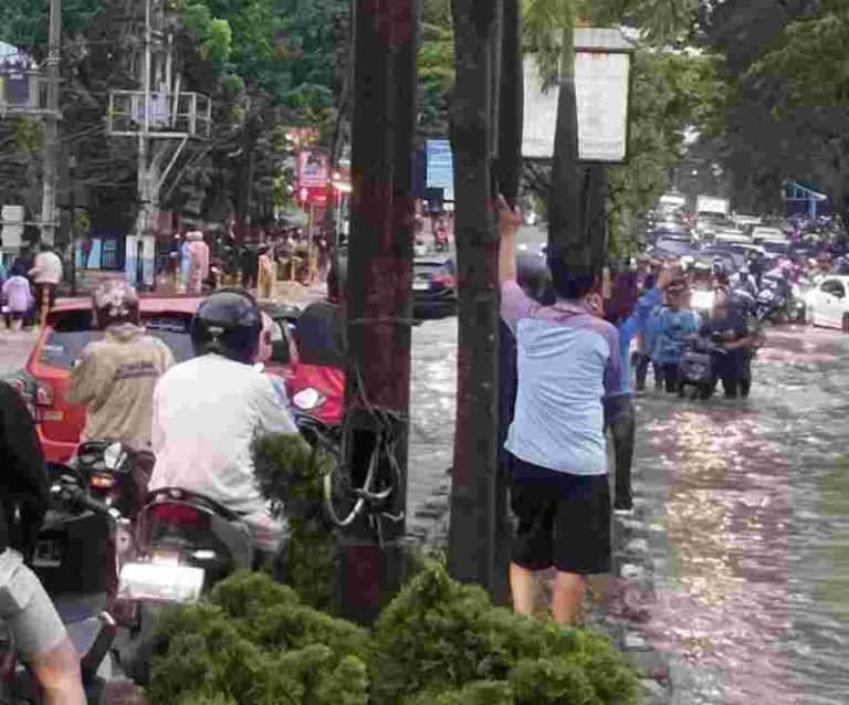 Lensa-Informasi.com. Genangan Air Hujan yang meluap diakibatkan hujan lebat, di kawansan Jalan Basuki Rahmat,...