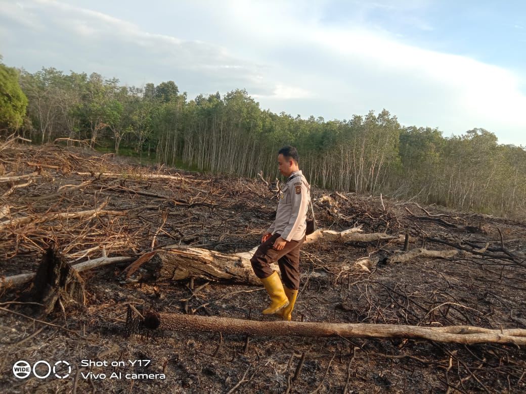 Lensa-informasi.com.– Personel Subsektor Rambang Kuang, Bripka Sartomo, melakukan pengecekan Tempat Kejadian Perkara (TKP) kebakaran hutan dan lahan (karhutla) yang terjadi di Desa Tangai, Kecamatan Rambang Kuang, Kabupaten Ogan Ilir, pada Jumat, 31 Oktober 2025.