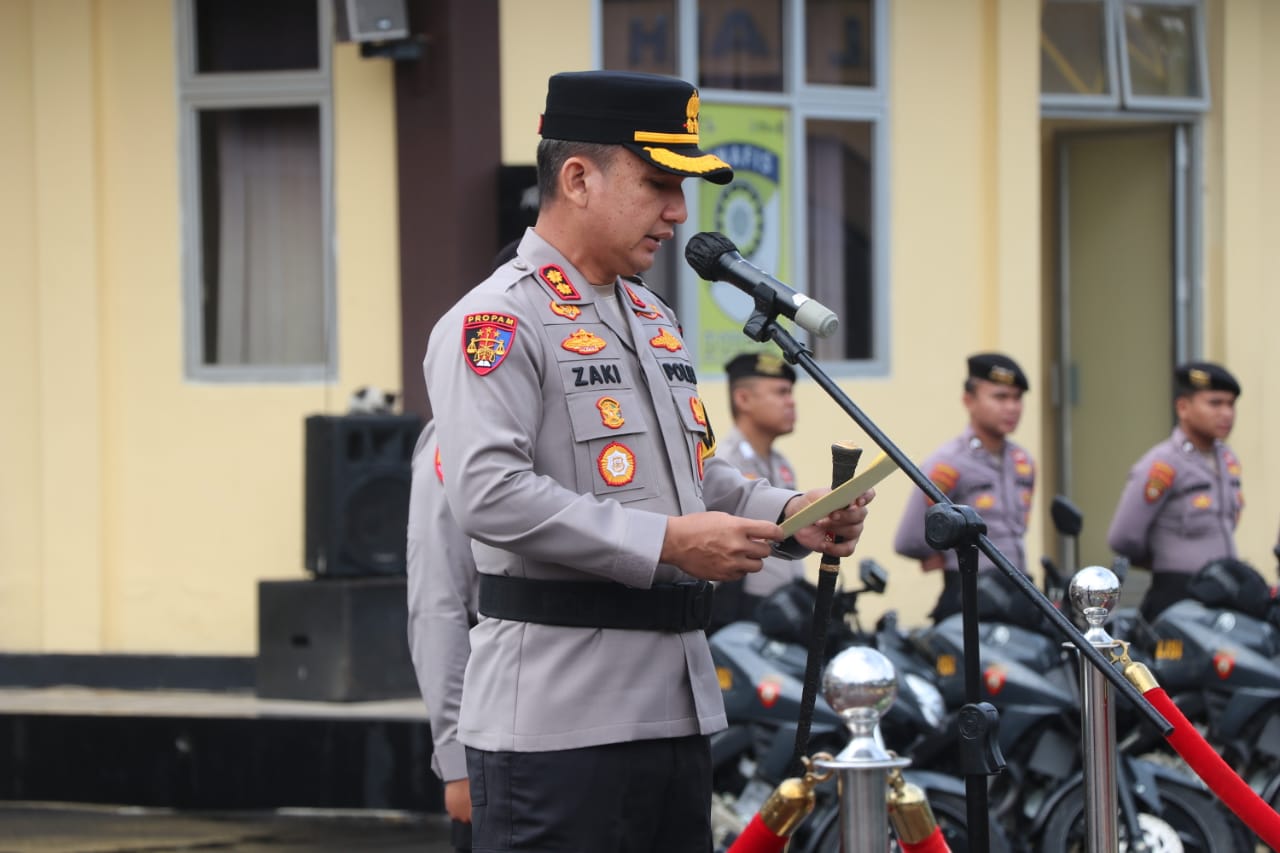 Dalam kesempatan tersebut, Kapolres Lebak AKBP Herfio Zaki, SIK, MH membacakan Amanat Kapolri, yang antara lain menekankan pentingnya kesiapsiagaan seluruh personel dalam menghadapi peningkatan mobilitas masyarakat selama Nataru, serta potensi gangguan kamtibmas, kemacetan lalu lintas, hingga ancaman bencana alam akibat cuaca ekstrem.