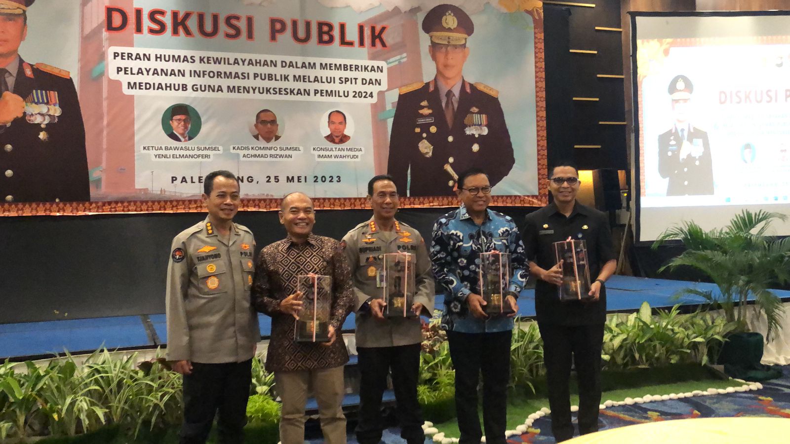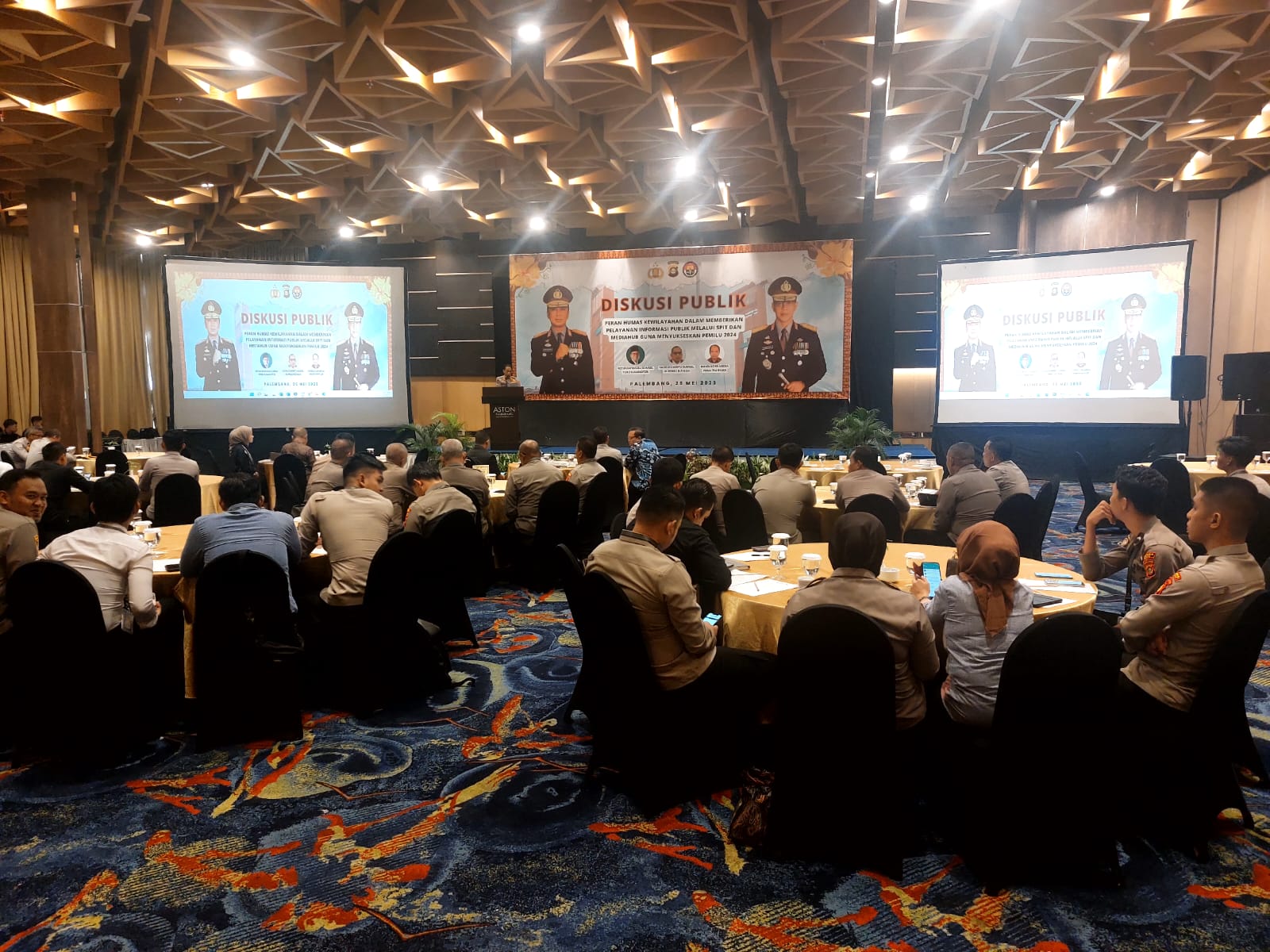 Lensa-informasi.com | PALEMBANG – Kapolda Sumsel Irjen Pol A.Rachmad Wibowo SIK diwakili Kabid Humas Polda Sumsel Kombes Pol Drs Supriadi MM ., membuka kegiatan Diskusi Publik tentang peran Humas kewilayahan dalam memberikan pelayanan informasi publik melalui SPIT dan MEDIAHUB guna menyukseskan Pemilu 2024 bertempat di Aston Palembang Hotel & Conference Center Kamis 25 mei 2023