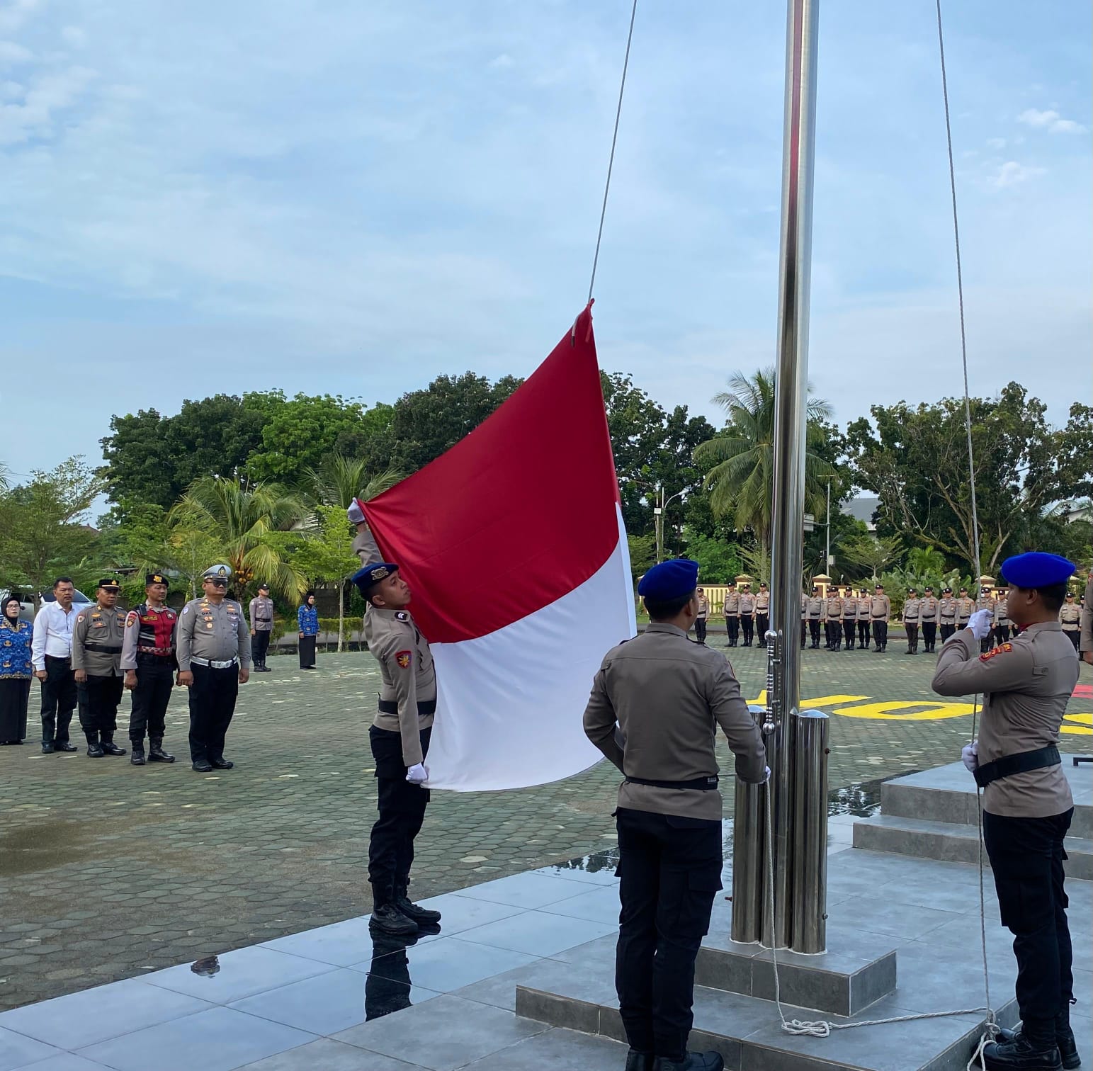 Upacara yang diikuti pejabat utama, personel Polres OKI, serta ASN Polri berlangsung khidmat. Seluruh peserta mengikuti rangkaian kegiatan dengan tertib, mencerminkan upaya konsisten menjaga kedisiplinan dalam pelaksanaan tugas kepolisian.